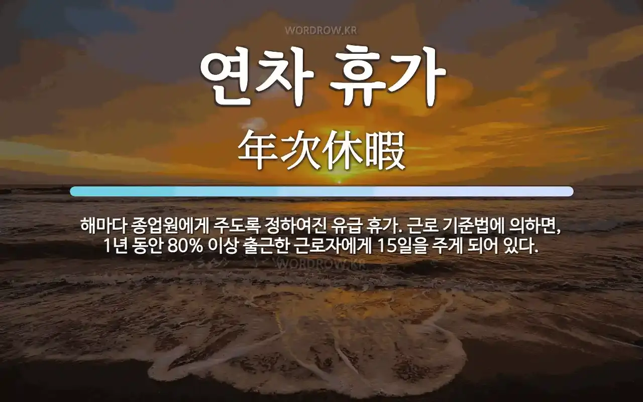- 휴가: 근로자는 1년 동안 근무한 경우 최소한 15일의 유급휴가를 받을 권리가 있습니다. 유급휴가는 연차휴가, 병가, 산전후휴가, 출산휴가, 육아휴직 등 다양한 목적으로 사용할 수 있습니다.